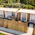 Her bir evin içi modern bir şekilde ve ihtiyaçlarınız göz önünde bulundurularak tasarlanmış; koltuk, televizyon, sehpa gibi temel eşyaların bulunduğu ve huzur içerisinde bahçe manzarasını izleyebileceğiniz bir oturma alanına sahip.
