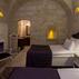 Aithra Cave Hotel, oyma taşlardan oluşturulmuş 82 oda ile hizmet vermektedir. Odalarda; klima, mini bar, televizyon, uydu yayınları, elbise dolabı, ayrı oturma grubu, kaliteli yatak takımı, masa, tuvalet ve kablosuz internet erişimi bulunmaktadır. Ayrıca özel bir banyoya sahip olan odalar; jakuzi, saç kurutma makinesi ve banyo malzemeleri ile donatılmıştır.