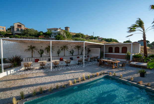 Bahçeli Cunda otellerinden Ajlan Oia Otel, doğanın kalbinde ihtiyaç duyduğunuz tazeliği sunuyor. Balıkesir’in temiz havasını alabileceğiniz bu bahçe, eşsiz tasarıma sahip. Bahçe genelinde kullanılan hoş detaylar ve tertemiz havuz, sizi ve sevdiklerinizi bambaşka bir dünyaya taşıyacak nitelikte.