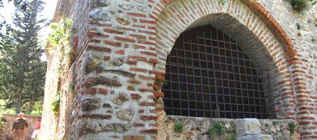 Gövdenin üst kısmından itibaren yıkık minaresi kırmızı tuğladan örülmüştür.