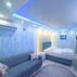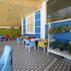 Mavi beyaz dış cephesi ve renkli mobilyalarıyla dikkat çeken Ali Baba Apart Otel, teras bölümündeki ahşap mobilyalarla dikkat çekiyor.