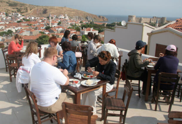 Aristo Hotel misafirleri güne ada, deniz ve kale manzaralı terasta taze ve adaya özgü tatların bulunduğu açık büfe kahvaltı ile başlamaktadır. Tesis bulunduğu konum itibariyle adanın ünlü plajlarına yakındır. Ek yatak imkanı bulunan tesis, araç kiralama konusunda tüm misafirlerine yardımcı olmaktadır.