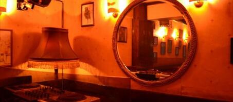 Koyu renkli kadife koltuklar, radyo konsolları, loş aydınlatma mekana ayrı bir hava katıyor.