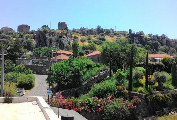 Odadan dışarıya terasa ya da bahçeye her çıktığınızda Ege'nin sıcak nefesi yanağınızı okşarken kahvaltınızı yapabilir, enfes akşama yemeklerinin tadına bakabilirsiniz. Kendinizi evinizde hissedeceğiniz kadar rahat, kendine özgü mistik havasıyla bir o kadar da ilgi çekici bu tarihi ve turistlik mekanın bir diğer manzarasını da Midilli Adası kaplıyor.