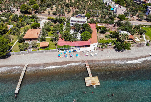 Tesis tüm misafirlerine yemyeşil zeytin ağaçları ve sardunya çiçeklerinin arasında huzuru hissetmeleri için odalara TV koymamıştır. Tesisin hemen önündeki plaj alanı küçük çakıl taşlıdır. Şezlong ve şemsiyeler bulunur. özel araçlarıyla gelen konuklar için otopark alanı olup ücretsiz kullanılmaktadır. Diğer öğünler için de tesis bünyesindeki restoranı tercih edebilirsiniz.