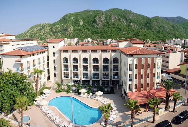 Marmaris'in canlı merkezine sadece 7,5 km uzaklıkta olan otel, hem sakinliği hem de eğlenceyi bir arada arayanlar için ideal. Alışveriş merkezleri, kafe ve restoranlara yakınlığı sayesinde, konuklar diledikleri zaman yerel lezzetlerin tadını çıkarabilir veya alışverişin keyfini sürebilirler. Her yirmi dakika bir kalkan dolmuşlar ve keyifli bir yürüyüş yolu, Marmaris'e ulaşımı kolaylaştırıyor. İçmeler'in merkezinde yer alan otel, bar ve gece klüplerine kolay ulaşım imkanı vererek tatilinizi renklendiren anlar yaşatıyor. Astoria Beach Hotel, hem huzur arayanların hem de eğlence peşinde koşanların ihtiyaçlarına cevap veren konumuyla unutulmaz bir tatil vadediyor.