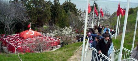 Türbei hakkında anlatılan efsanenin yanı sıra bir hikayesi daha vardır. Buna göre sancaktarlık yapan Karacabey, Bizans ile yapılan savaşta elinde sancağıyla şehit düşer. Vasiyeti üzerine bugün bulunduğu yere yani donanmasının merkezine gömülmek isteyen askerin isteği yerine getirilir. Bugün mezarı bayraklarla donatılmaya devam etmektedir. Türbe Gelibolu seyahatinde mutlaka görülmesi gereken yerlerden biridir.