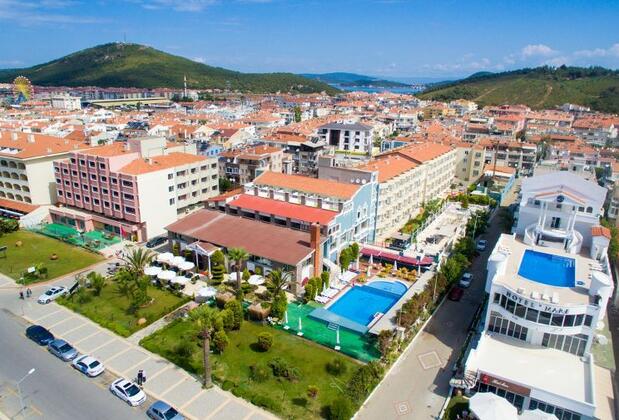 000 m2 alan üzerinde, denize sıfır mesafededir. Tesisin hemen önündeki kendine ait 150 m uzunluğundaki plajda ücretsiz şezlong ve şemsiye hizmeti vardır. Bununla birlikte tesiste 2 adet yüzme havuzu mevcut olup, palmiyeli havuzda jet stream, çocuk havuzu ve suni dalga vardır. Diğer havuzda da kaydırak grubu bulunmaktadır.