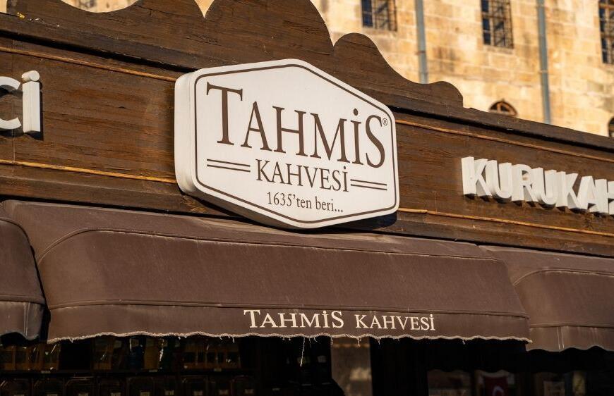 Tarihi Tahmis Kahvesi, Türkmen ağası Mustafa Ağa tarafından 1635-1638 yıllarında Mevlevihane Tekkesi’ne gelir getirmesi amacıyla inşa edilmiştir. Osmanlı döneminin kahvehane kültürünün bir parçası olan mekan, halkın buluşma noktası olmuş ve yüzyıllar boyunca Gaziantep’in sosyal ve kültürel hayatına tanıklık etmiştir. Ancak, 1901 ve 1903 yıllarında iki büyük yangın geçirmiş ve yeniden inşa edilmiştir. Mevlevihane’nin postnişini Feyzullah oğlu Şeyh Münip Efendi, o dönemde 33 dükkanla birlikte Tahmis Kahvesi’ni restore ettirmiştir. Osmanlı İmparatorluğu’nun önemli duraklarından biri olan İpek Yolu üzerinde konumlanması, Tahmis Kahvesi’nin ününü tüm Osmanlı topraklarına yaymıştır. Rivayetlere göre, Sultan IV. Murat da Bağdat Seferi sırasında bu kahvehanede dinlenmiş ve kendisine kahve ikram edilmiştir.