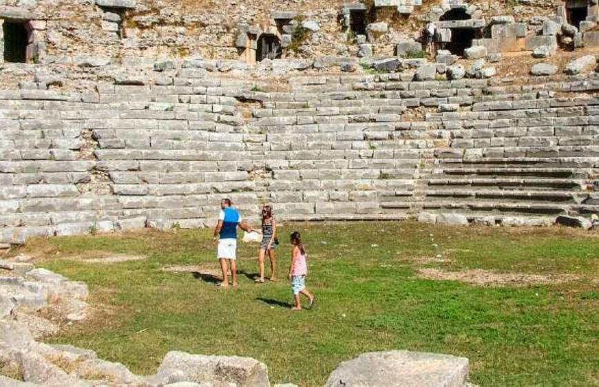 Anıt mezarları kadar, sütunlu caddesinin tam ortasından geçen deresiyle de bilinen Limyra Antik Kenti’nde eğer hava elverişliyse ve yanınızda mayonuz varsa antik sütunlu caddede kulaç atabilirsiniz.