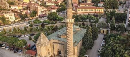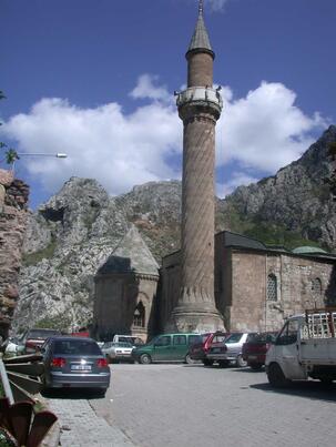 Amasya’nın Dere mahallesinde yer alan bu tarihi cami Selçuklu Sultanı II. Gıyaseddin Keyhüsrev zamanında Vezir Necmeddin Ferruh Bey ve kardeşi Haznedar Yusuf tarafından yaptırılmıştır. Ahşap minberi kitabeli olup Mahkeme Cami olarak da bilinen tarihi yapı, 1590 yılında bölgede gerçekleşen deprem sebebiyle hasar görmüştür. İlk yapıldığında minaresi tamamen ahşap olan caminin 1602 yılında başından geçen yangın ile yok olmuştur. Cami, bu afetler sonucu birçok kez onarım ve restorasyon işleminden geçmiştir. Cami üzerinde yapılan her restorasyon ve onarımın sonucu olarak da yapı orijinal görünümünü kaybetmiştir. Caminin kapısı üzerinde bulunan kemer, kavisli şekildeki kitabeden 1242 yılında yapılan Burmalı Minare Cami’nin; Necmeddin Ferruh Bey ve kardeşi Haznedar Yusuf tarafından yaptırıldığı anlaşılmaktadır. Evliya Çelebi’nin, Seyahatname’sinde Mahkeme Camii ismiyle bahsettiği 1590 yılındaki deprem ve 1602 yılında yaşanan yangında hasar gören Bunun yerine yapılan minare bu kez caminin güçlü taş yapısına uygun biçimde taştan yapıldı. Dönerek minarenin etrafını dolanan yivlerin oluşturduğu bu yapıya bu zamandan sonra Burmalı Minare, camiye de Burmalı Minare Camii denmiştir.