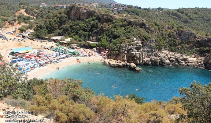 Büyük Çakıl Plajı aynı zamanda Küçük Çakıl Plajı'nın bulunduğu koyun da hemen doğu tarafındadır. Büyük Çakıl Plajı'nın yaklaşık olarak 50 metre uzunluğundaki plaj alanı berrak, tertemiz deniz suyuyla ve tatil kokusu sinmiş havasıyla sizi kendine aşık edecek.