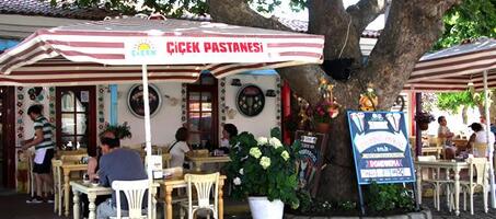 Sadece Çiçek Pastanesi’nin hazırladığı damla sakızlı bademli kurabiyesi 150 yıllık bir lezzet geleneği adada. Zamanında Rumların misafirlerine sunduğu özel tatlardan.