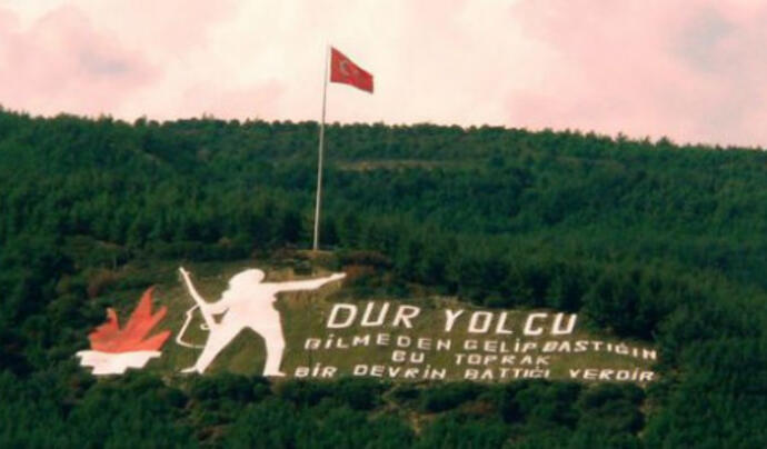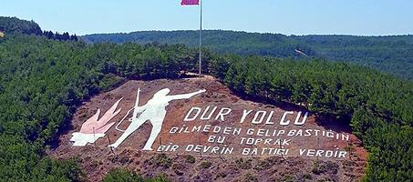 Çanakkale Boğazı’ ndan geçen tüm gemilerin görebildiği Dur Yolcu Anıtı, Çanakkale tarafından da rahatlıkla görülebiliyor. Şair Necmettin Halil Onan’ a ait olan Dur Yolcu şiirinin, yamaçta yer alan kısmı ise şöyle; Bilmeden gelip bastığın bu toprak, Bir devrin battığı yerdir’. Eğer yolunuz Çanakkale’ ye düşerse, etrafınıza dikkatlice bakın.