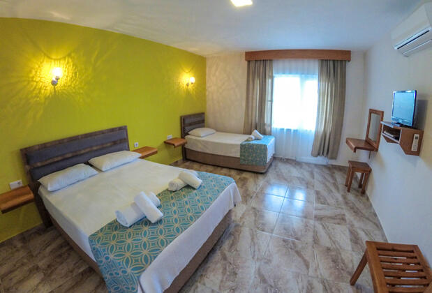 Odalarda ise standart olarak dolap, klima, mutfak eşyaları, buzdolabı, televizyon ve saç kurutma makinesi gibi eşyalar bulunuyor.
