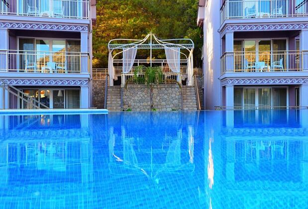 Otelimiz, dünyaca ünlü Ölüdeniz plajına 3 km mesafede ve sırtını çam ormanlarına yaslamış, çarşısıyla ünlü Hisarönü bölgesindedir. Bölgenin yamaç paraşütü sporu ile ünlenmiş en yüksek tepesi olan Babadağ (2000 m. ) ve havuz manzaralı tesisimizin denizden 400 m. yükseklikte olması, misafirlerimize, nem ve sıcaklık konusunda önemli oranda rahatlık hissettirmektedir.