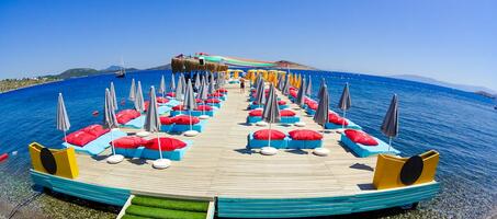 Bodrum merkezden özel aracınız ile 10 dakikalık bir sürüş sonrası ulaşabileceğiniz Fink Beach Club, tertemiz denizi ile görenleri büyüleyen cinsten bir mekan. Tatilciler burada hem denizin ve güneşin tadını çıkarabilir hem de Bodrum’un gece hayatının keyfini alabilirler.