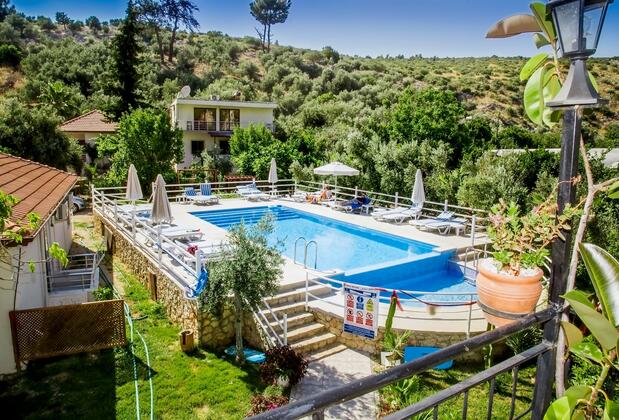 Çimle kaplı bu bahçede oyunlar oynayabilir, içeceğinizi içip sohbetler edebilir, sessizlikle huzur bulabilirsiniz. Geleneksel Türk kahvaltısıyla güne başlamanın tadını çıkarabileceğiniz pansiyonda, öğle ve akşam yemeği de servis edilmektedir. Zeytin, peynir, domates, salatalık, yumurta ve sıcacık ekmekle yapacağınız kahvaltınız bahçede servis edilmektedir. Ev yapımı reçeller ve marmelatlar da kahvaltı da bulunur.