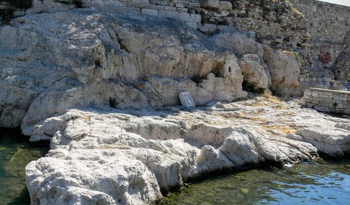 Tapınaktaki kayaya oyulmuş adak havuzu ise denizci fenerlerinin konulması için yapılan küçük nişler vardır. Bu küçük nişler denizcilerin burada tapındıklarını gösteren bir işarettir. Kutsal alanın yaslandığı kayalık üzerindeki sur duvarları bulunmaktadır. Bu sur duvarları duvar yapımının dört ayrı döneme sahip olduğunu göstermektedir. Arkaikten yapılan surlar, harç kullanılmadan inşaa edilmiştir. Roma dönemi surlarında kireç harcı kullanılırken; Ceneviz ve Osmanlı dönemi surlarında kireç harcı, kum, tuğla parçası ve kiremit tozlarından oluşan Horasan Harcı kullanılmıştır.