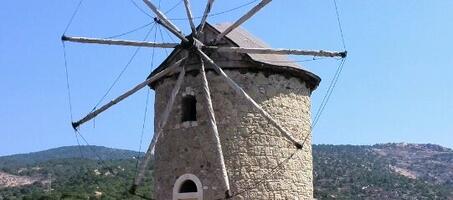 Foça’nın Top Dağı tepesinde bulunan tarihi üç adet değirmenin onarım çalışmalarıyla taş kısımları, değirmenlerin pervane ve çark gibi hareketli kısımları da aslına uygun olarak Foça’nın marangoz ustaları tarafından ahşaptan imal ediliyor.