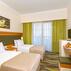 Odaların bazıları deniz manzarasına, bazıları ise Toros Dağları'nın muhteşem manzarasına bakmaktadır. Bazı odalarda teras ve balkon vardır. Odalar değişkenlik göstermektedir. Günlük olarak oda temizliği yapılmaktadır. Forest Park Otel Kemer'de restoran ve havuz başı snack bar vardır. Ücretsiz açık büfe kahvaltı servisi vardır. Akşam yemeği menüsünde yöresel yemekler mevcuttur.