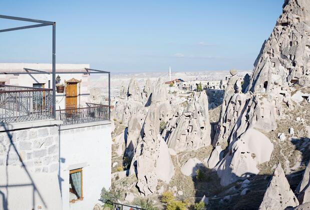 Özel duşlu banyolarında temiz havlu ve bornoz setleri, terlikler, ücretsiz banyo kozmetik ürünleri ve saç kurutma makinesi bulunmaktadır. Hermes Cave Hotel konaklama yapan misafirlerine ek ücret karşılığında haftanın her günü kahvaltı servisi yapmaktadır. Araç ile seyahat eden misafirler için ücretsiz otopark alanı vardır. Uçhisar Kalesi.