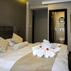 Odalarda; klima, buzdolabı, elbise dolabı, televizyon, uydu yayınları, telefon, kaliteli yatak takımı, ayrı oturma grubu, çalışma masası, makyaj aynası, tuvalet ve kablosuz internet erişimi bulunmaktadır. Ayrıca, özel bir banyoya sahip olan odalar, 24 saat sıcak su, saç kurutma makinesi ve banyo malzemeleri ile donatılmıştır.