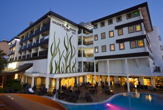 Antalya'nın popüler tatil bölgesi Side'nin Kumköy mevkiinde konumlanan Holiday City Hotel, konforlu ve keyifli bir konaklama deneyimi yaşatıyor. Denize sadece 900 metre uzaklıkta yer alan otel, misafirlerine halk plajından faydalanma imkanı tanıyor. Tatilinizin tadını çıkarabileceğiniz Holiday City Hotel, aynı zamanda havuzunda yüzme ve güneşlenme olanağı sunuyor; bir adet su kaydırağı da bulunarak eğlenceli anlar vadediyor.