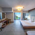 Tesiste bulunan odaların hepsi deniz manzaralı olup konaklama paketine tüm alkolsüz içecek ve tüm öğünlerdeki yiyecekler dahildir. Arzu eden misafirler denize sıfır otellerinde plajın keyfini güneş şemsiyelerinin altında çıkartabilirler. Çocuklu ailelerin konaklama sırasında küçük misafirlerin de keyifli vakit geçirebilmesi için çeşitli aktivitelerin yapıldığı mini club.