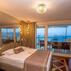 Otelin bazı odalarında uyuma alanına ek olarak oturma bölümü ve teras da yer alıyor.