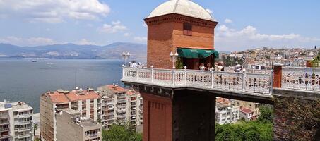 İzmir Tarihi Asansör, Ege’nin incisi İzmir’in tarihi noktalarından biridir. Günümüzde Mithat Paşa Caddesi ile Halil Rıfat Paşa Caddesi arasında bulunmaktadır. Tarihi asansörü, haftanın her günü ziyaret edebilir ve kullanabilirsiniz. Asansör sabah 08:00 ile gece 00:00 arasında ziyarete açıktır. Konak ilçesine bağlı Karataş semti çok eskilerde zengin Yahudi ailelerin yaşadığı bir yermiş. İzmir’in Konak ilçesindeki sahil şeridi Mithat Paşa Caddesi’dir. Halil Rıfat Paşa Caddesi ise Mithat Paşa Caddesi’nin hemen üstünde kalan caddedir. Bu iki cadde arasındaki yükseklik ise 58 metreydi. Caddeleri birbirine bağlayan 155 basamaklı bir merdiven var. Bu iki cadde arasındaki yaya ulaşımını sağlayan merdivene, bölgede yaşayan Müslümanlar ’Karataş Merdiveni’ derlerdi. Yine bölgede yaşayan Yahudiler ise en üst bölümünde bulunulan Devidas Ailesi’nin evi dolayı bu merdivenlere ’Devidasların Merdiveni’ olarak adlandırmaktaydı. Halk arasında anlatılan bir rivayete göre de merdivenlerin üstünde yaşayan Devidas Ailesi’nin reisi bir gün bu merdivenlerde düşüp ayağını kırar. Yaşanan bu talihsiz hadise üzerine, sahil kesiminde oturan ve Devidas Ailesi’nin yakın dostu olan Musevi iş adamı Nesim Levi Bayraklıoğlu, iki cadde arasındaki yaya ulaşımını kolaylaştırmak üzere 1907 yılında tarihi asansörü yaptırmıştır. İzmir Tarihi Asansör, günümüzde de hizmet vermeye devam etmektedir. İzmir Büyükşehri Belediyesi tarafından işletilen tarihi asansörün yapısı bozulmadan yeni yapılar da inşa edilmiştir. Bu yapılar Ceneviz Bar, Asansör Restoran ve Teras Cafe olarak bilinir. Asansöre ulaşmak isteyenlerin Asansör Çıkmaz Sakağına gelmeleri gerekir. Asansör Çıkmaz Sokağının resmi ismi ise Dario Moreno olarak bilinmektedir. Asansörün giriş kapısının hemen üstünde bir kitabe bulunmaktadır. Kitabede hem İbranice hem de Fransızca olarak ’Asansör 1907 yılında Nissim Levy tarafından inşa ettirilmiştir.’ Yazmaktadır. Taş yapı temeli üzerine tuğla örülü asansörün taş yapı bölümünün ardından balkona kadar iki kademede ufalarak devam eden tuğla döşemelerindeki tuğlaların Marsilya’dan özel olarak getirilmiş olduğu söylenir. Çift kabinli olarak inşa edilen asansörün soldaki mekanizması su buharıyla, sağdaki ise elektrik enerjisiyle çalışıyordu. Mithat Paşa Caddesi girişindeki holün solunda hidrolik kazan dairesi, Halil Rıfat Paşa Caddesi çıkışının solunda ise makine dairesi de bize bunu gösteriyor.