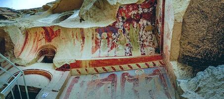 Kilisenin duvarlarında Hristiyanlık tarihinde gelişmiş önemli olayların anlatıldığı sahneler ve önemli kişiler resmedilmiş. Kapadokya Çavuşin Kilisesi'nin boyanmasında üç farklı teknik kullanılmış. Diğerlerine göre daha eski bir teknikle boyanan Kapadokya Çavuşin Kilisesi, bu nedenle yer yer kayanın aşınmasına bağlı olarak tahribat görmüş.