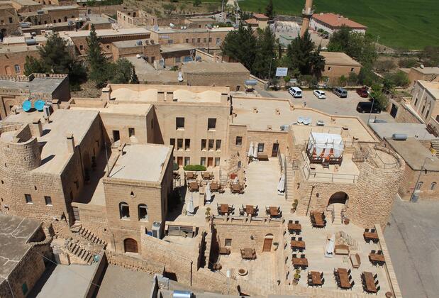 Mardin Havalimanına 75 km mesafede olup, Midyat İlçesinin tarihi Merkezinde, Işıklar Mahallesi ( Nehrozlar Mahallesi) Mor Hobel – Mor Abraham Manastırı ve Mezarlığı, Mor Barsavmo Kilisesi, Protestan Kilisesi, Mor Aksanoya Kilisesi ortasında inşa edilmiş olan Kasr-ı Nehroz Hotel, Mor Gabriel ( Deyrul Umur ) Manastırı’na 18 km mesafede yer almaktadır.