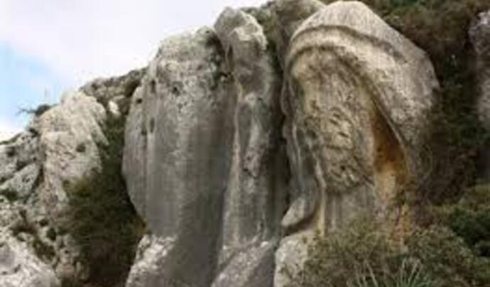 Birçok kişi hastalıktan öldükten sonra, Leios adında bir kahin, şehre bakan yüksek bir tepede büyük bir maskenin yapılmasını istiyor ve böyle bir kabartmanın yapılması kararlaştırılıyor. Geçen zamanla birlikte veba salgının durmasıyla mitolojide cehennem kayıkçısı olarak bilinen kaya kabartması tamamlanamadan yarım bırakılmıştır.