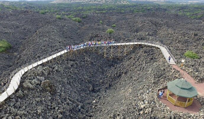 Volkanik Mağara ve Tüneller Bölgede lavların içinden aktığı pek çok lav mağarası / lav tüneli bulunur. Lav tünelleri akıcılığı yüksek lavların havayla temas eden kısımlarının katılaşması sonucu oluşmuştur. Akan lavın kalınlığının az ve çok çatlaklı olması da lav tünellerinde çökmelere sebep olmuştur.