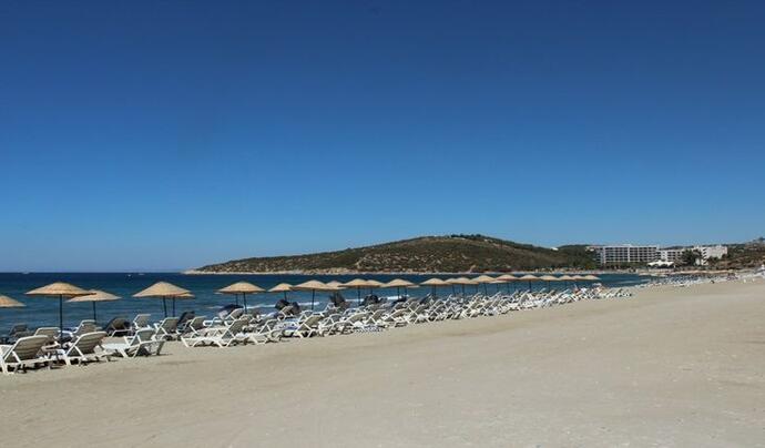1 kilometrelik kumluk plajdan sonraki kısmın bazı bölgeleri çakıl ve taşlıktır. Bu kum sahil şeridi ile Kuşadası’ nın önemli plajlarından birisidir. 2000 yılında komple düzenlenerek otopark alanı kafeterya duş, tuvaletler konulmuştur. Su sporları ve plaj voleybolu aktivitelerini seven tatilciler için bu sahalar mevcuttur. Çevresinde 5yıldızlı oteller yer almaktadır.