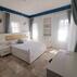 Taş binalar bu görünümü desteklerken modern çizgilerden de şaşmıyor elbette. Diğer bir deyişle renkler ve konsept gerçekten harika. Odalara genel olarak beyaz ve mavi renkler hakim. Yataklar oldukça rahat ve dolaplar yeterli seviyede. Yani 1 hafta yerine daha uzun bir tatil planlamış olanlar da eşyalarını bu dolaplara rahat rahat sığdırabilirler.