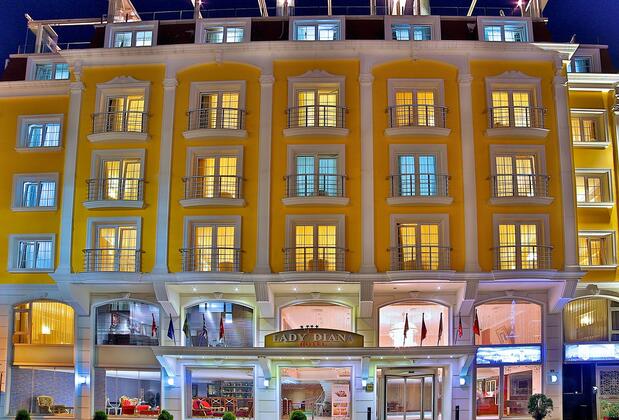 Lady Diana Hotel İstanbul'daki revaçta olan oteller arasında yer alıyor. Sarı ve beyazın uyumuyla dikkat çeken tesisin dış mimarisinde şık detaylara yer veriliyor. Aynı özen tesisin iç dekorasyonunda da korunuyor.