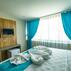 Odalarda aynı zamanda temiz çarşaf takımları, karartmalı perdeler, klimalar, komodinler, aydınlatma üniteleri, makyaj masası ve aynası, elektrikli su ısıtıcısı, çay ve kahve köşesi, zengin içecek menüsü ile mini bar, masa ve sandalyeler, konukların dinlenirken keyifli vakit geçirmeleri için uydu yayınlı düz ekran TV vardır.
