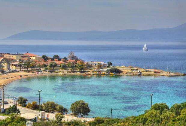 Orion Konukevi, beyaz boyalı evleri, çiçekli avluları ve tarihi dokunun yoğun olarak hissedildiği Sığacık.