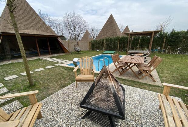 İşletme konuklarının şehrin yoğunluğundan uzak bir alanda tatil yapmasına imkân verirken havuzda serinleme olanağı da sunuyor. Pyramid Sapanca havuzunu konuklarının beğenisine sunarak ağaçların eşlik ettiği alanda keyifli serinleme imkânı sağlıyor. Çitlerle örülmüş evin çevresinde sevdiklerinizle havuzun keyfini sürüp yılın yorgunluğunu üzerinizden atabilmeniz mümkün.