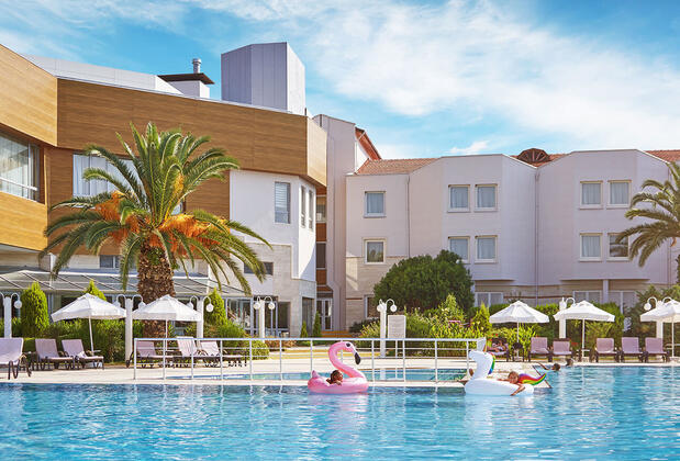 Dinlenmeyi konfora dönüştüren ve yıl boyu etkisini koruyan bir enerji veren tesiste açık yüzme havuzu sadece yaz sezonunda hizmete açılıyor. Gurme şefler, deneyimli ekipler ve dünya mutfağından nefis lezzetlerle donanımlı bir ziyafet bulacağınız otelin sabah kahvaltıları da bol çeşit sunuyor.