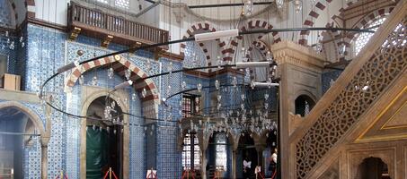 Cami, İznik çinilerinden dolayı çok da sade değildir. Buradaki çiniler Osmanlı çini sanatının en güzel ve en başarılı örneklerindendir. Rüstem Paşa Camii, dikdörtgen planlı olarak inşa edilmiştir.