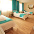 Odalarda; klima, mini bar, elbise dolabı, televizyon, uydu yayınları, telefon, kaliteli yatak takımı, oturma grubu, tuvalet ve kablosuz internet erişimi bulunmaktadır. Ayrıca, özel bir banyoya sahip olan odalar, saç kurutma makinesi ve banyo malzemeleri ile donatılmıştır. Evcil hayvan kabul etmeyen tesisin odaları, düzenli olarak temizlenmektedir.