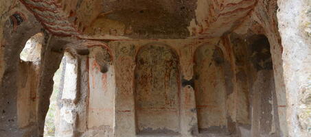 Saklı Kilise’ nin çevresinde birkaç tane boyalı bez parçası bulunmuş. Yapılan çalışmalar neticesinde, bu bez parçalarının kilisenin boyanmasında fırça olarak kullanıldığı ortaya çıkmış. Kilisenin resimlerinin ise Yusuf Koç Kilisesi’ ndeki resimlerle benzerlikler gösterdiği fark edilen bir diğer detay. Kırmızı rengin hakim olduğu Saklı Kilise, 11. yüzyılın ikinci yarısına tarihleniyor.