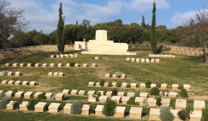 Daha sonra sola ve Anzak Koyu’ na doğru geri dönüp, birkaç metre yürüyün. Shrapnel Valley Mezarlığı levhasını gördüğünüzde, dar yoldan sola dönüp, mezarlığa ulaşana kadar devam edin ve mezarlığın içinden yukarıya doğru bakın. İşte o noktada Şarapnel Vadisi’ ni göreceksiniz.