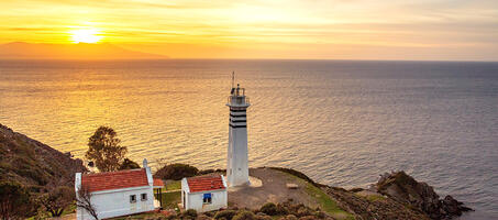 yalnızlığa terk edilmiş bölgesinde, Ege Denizi'nin maviliğinin önünde bembeyaz görüntüsüyle selamlıyor bizleri Sarpıncık Deniz Feneri. 12 metrelik beyaz kulesi ve bahçe içerisinde yer alan fener evi ile oldukça şirin bir görüntüsü var bu deniz fenerinin. Teknik detayları bir kenara bırakalım.