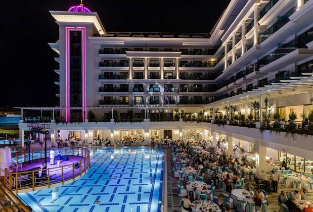 Side'nin merkezinde, maviyle yeşilin birleştiği cennet bir noktada konumlanan La Grande, huzurlu ve konforlu bir tatilin vazgeçilmez adresi. 4. 000 metrekare alana kurulu otel 9 katlı olup, 381 odasıyla ‘ her şey dahil' konseptinde hizmet veriyor.