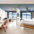Odalarının her birinde özel banyo, jakuzi, havlu, saç kurutma makinesi, ücretsiz banyo / kozmetik ürünleri, eşya dolabı, mini bar, kettle / su ısıtıcısı, LCD TV, klima, deniz manzaralı balkon, kasa ve telefon bulunmaktadır.