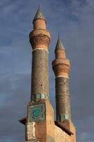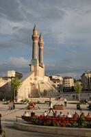 Sivas il merkezinde bulunan Çifte Minareli Medrese 1271 yılında yapılmış ve günümüze kadar gelebilmiş tarihi bir yapıdır. Kitabesindeki bilgiye göre; medrese İlhanlı Veziri Sahip Şemseddin Mehmed Cüveyn tarafından yaptırılmıştır. Sivas'a yolunuz düşerse medreseyi mutlaka ziyaret etmelisiniz. Günümüz sadece görkemli iki minaresi kalan medresenin bir de taç kapısı vardır.